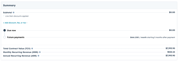TCV, MRR, and ARR now show in the Quote Summary. More in this area coming soon.