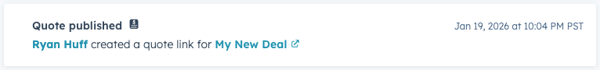 Every time a quote is published, Quotivity will send an event to the Deal called "Published Quote." It tells you when a quote was published, of course, but the event also carries data with it that you can use in workflows. Right now that data includes the Published Quote URL, but we'll be adding more.